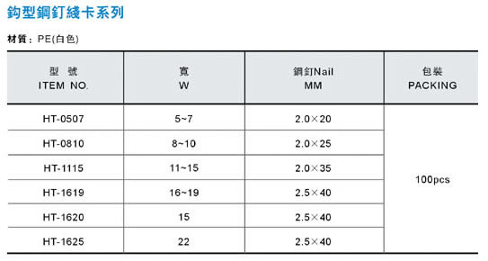 • 產品類別: 產品展示 鋼釘線卡 新品展示